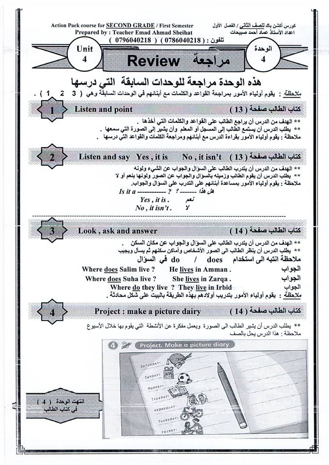 اوراق عمل انجليزي للصف الثاني منهاج معلمو ومعلمات الوطن العربي Facebook