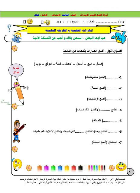 اوراق عمل علوم ثالث ابتدائي